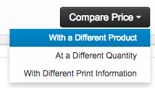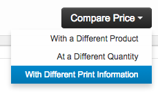 Load your first product and add in product color and quantity, just click the “Compare Price” button and select “With Different Print Information”. We don’t recommend comparing more than 3 or 4 products, otherwise it can get confusing.